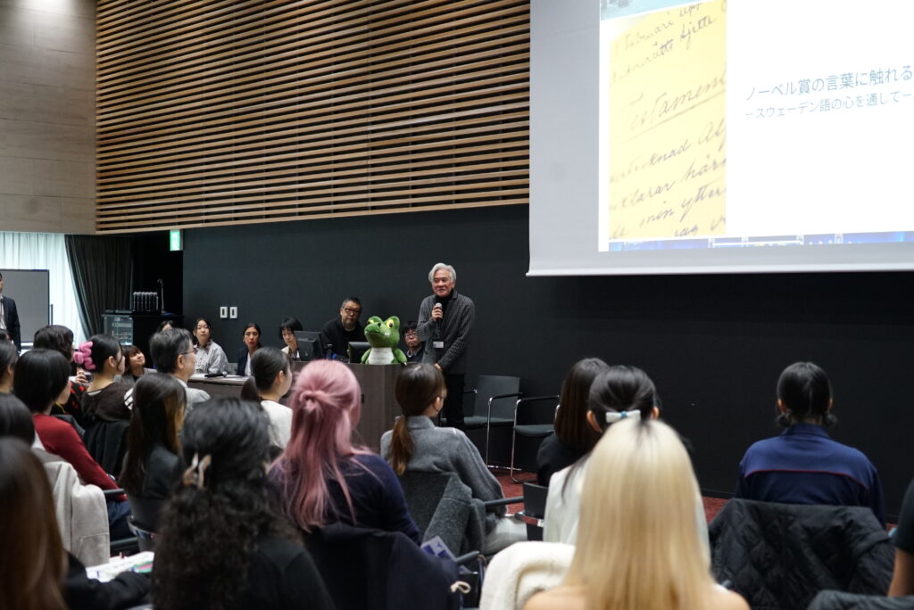 2025年11月19日(水)、箕面キャンパス大阪外国語大学記念ホールにてノーベル生理学・医学賞を受賞された坂口志文特別栄誉教授とスウェーデン語専攻の教員・学生との交流会を開催しました。