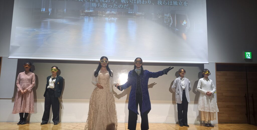 11月29日(土)、30日(日)に、箕面キャンパスで語劇祭が開催されました。語劇際は大阪外国語大学時代から長く続いている伝統的な行事で、毎年学生が主体となり、各専攻の学生が自分たちの専攻の言語(2025年度は21言語)を使って劇を披露します。スウェーデン語専攻では、毎年2年生が語劇に参加することになっており、今年は宝塚ミュージカル「白夜の誓い」の物語を原作にアレンジを加えて上演しました。